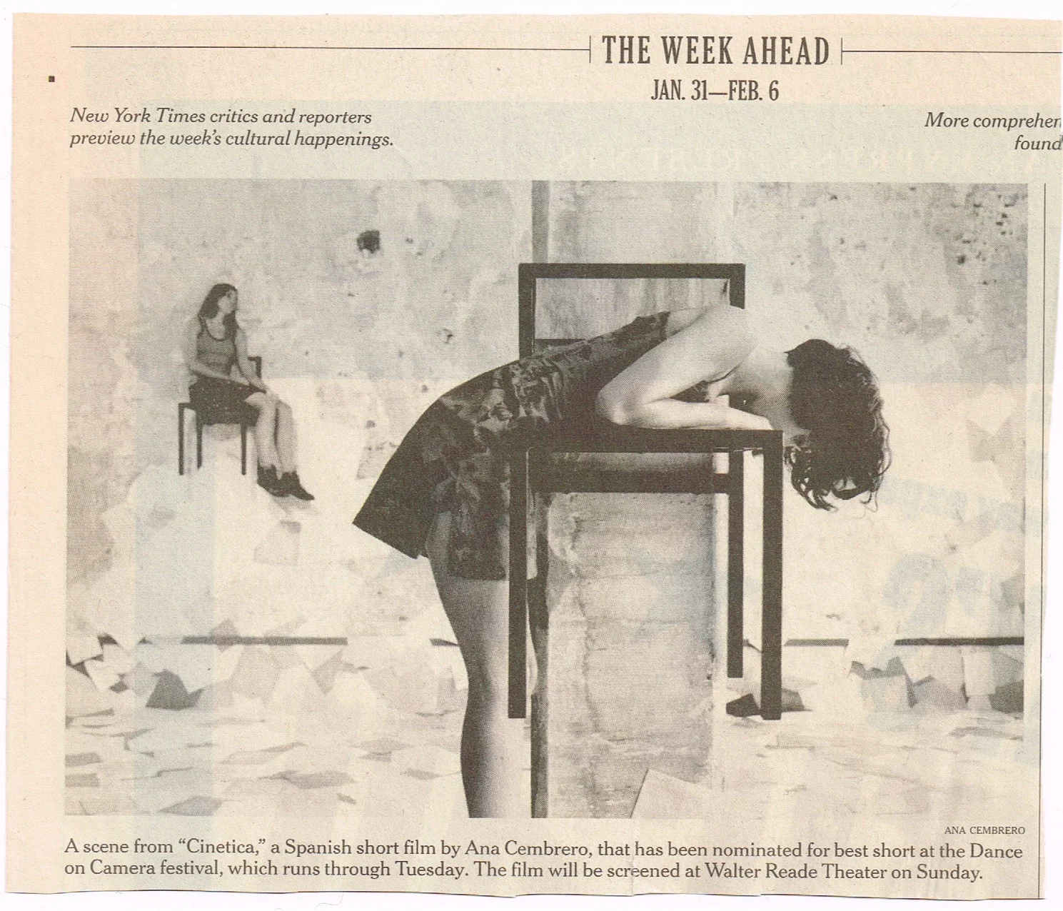 On "CINÉTICA" by Ana Cembrero Coca. 1st prize at Dance On Camera Festival NYC 2010: